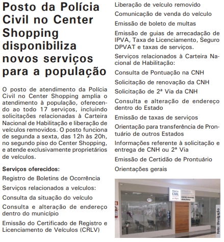 JORNAL - Posto da Polícia Civil no Center Shopping disponibiliza novos serviços para a população - 02/10