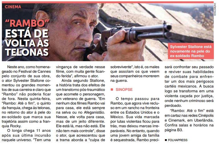 JORNAL - "RAMBO" ESTÁ DE VOLTA ÀS TELONAS (19/09)
