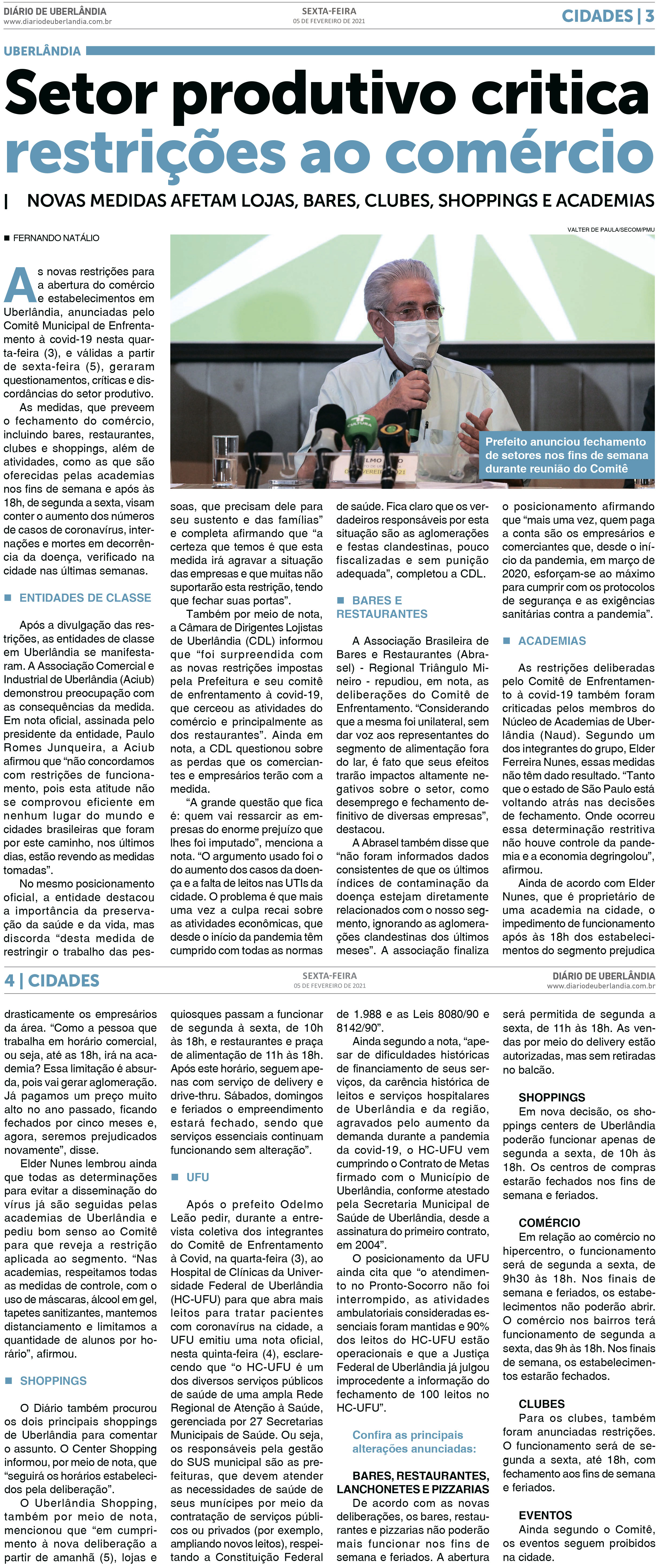JORNAL - Setor produtivo critica restrições ao comércio - 05/02