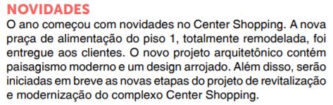 JORNAL - SOCIAL - NOVIDADES - PRAÇA DE ALIMENTAÇÃO - 12/01/2020