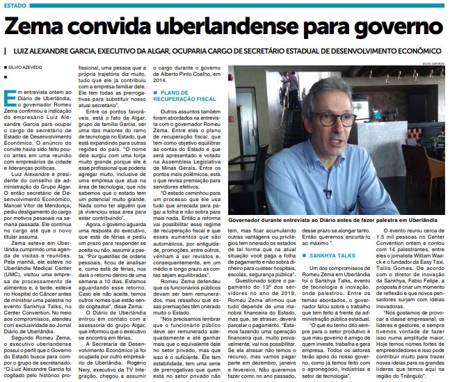 JORNAL - Zema convida uberlandense para governo - (25/09)