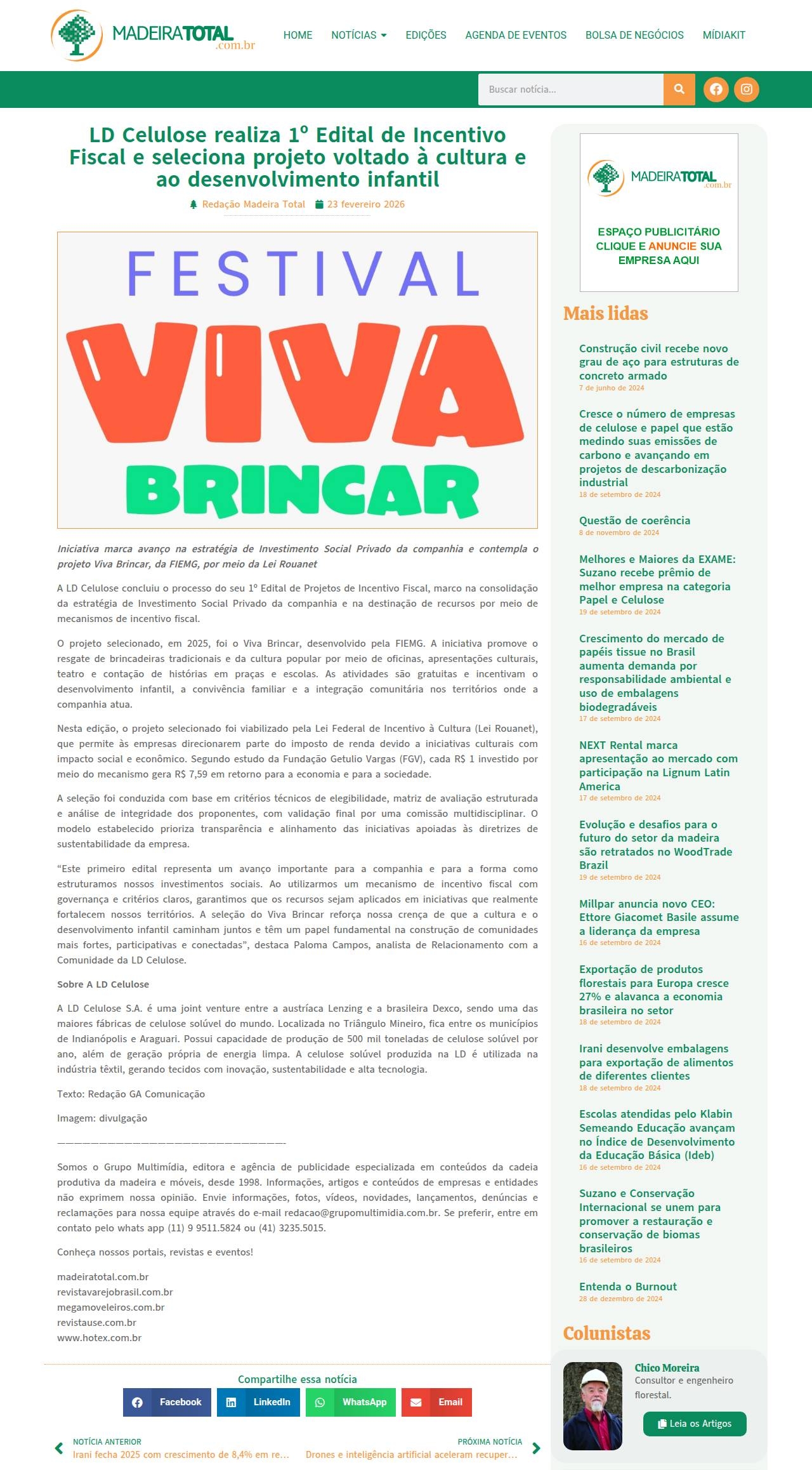 https://www.madeiratotal.com.br/ld-celulose-realiza-1o-edital-de-incentivo-fiscal-e-seleciona-projeto-voltado-a-cultura-e-ao-desenvolvimento-infantil