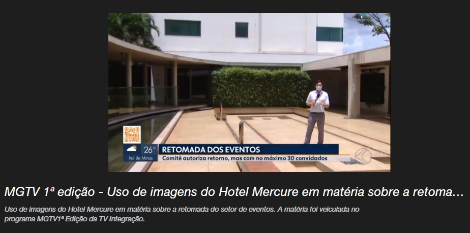 MGTV 1ª edição - Uso de imagens do Hotel Mercure em matéria sobre a retomada do setor de eventos - 26.10