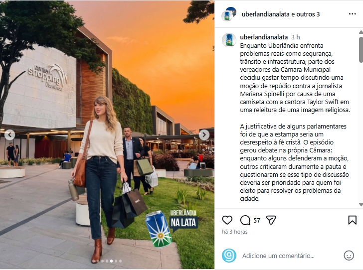 Montagem por IA da Taylor Swift em lugares por Uberlāndia
