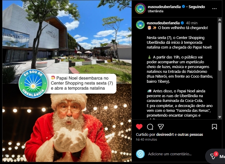 Nesta sexta (7), o Center Shopping Uberlândia dá início à temporada natalina com a chegada do Papai Noel!