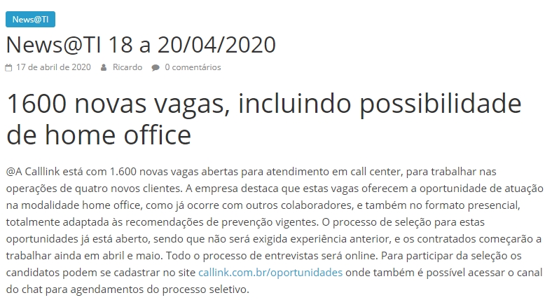 ONLINE - 1600 novas vagas, incluindo possibilidade de home office - (18/04)