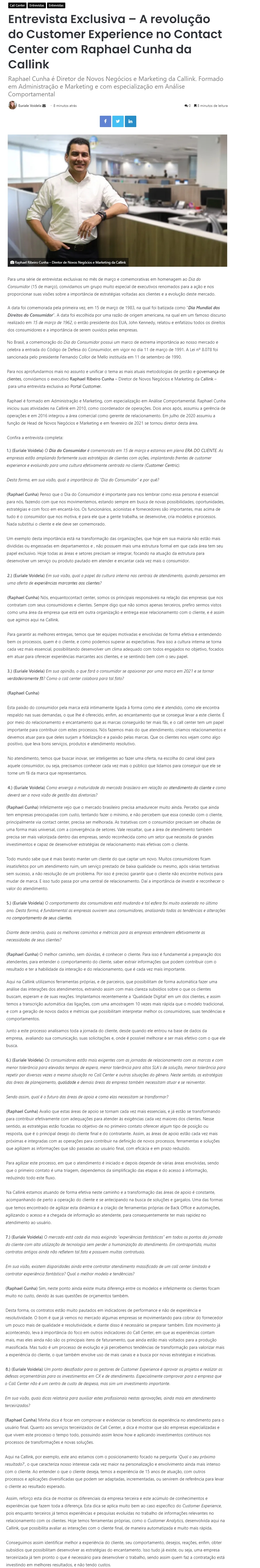 ONLINE - A revolução do Customer Experience no Contact Center com Raphael Cunha da Callink - 22.03