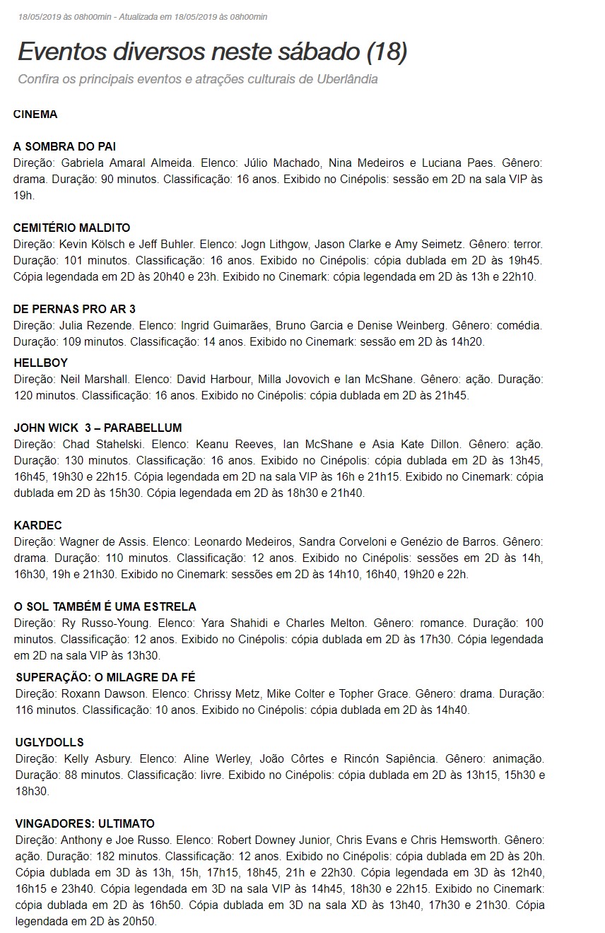 ONLINE - Agenda Cultural - Cinema (18/05)