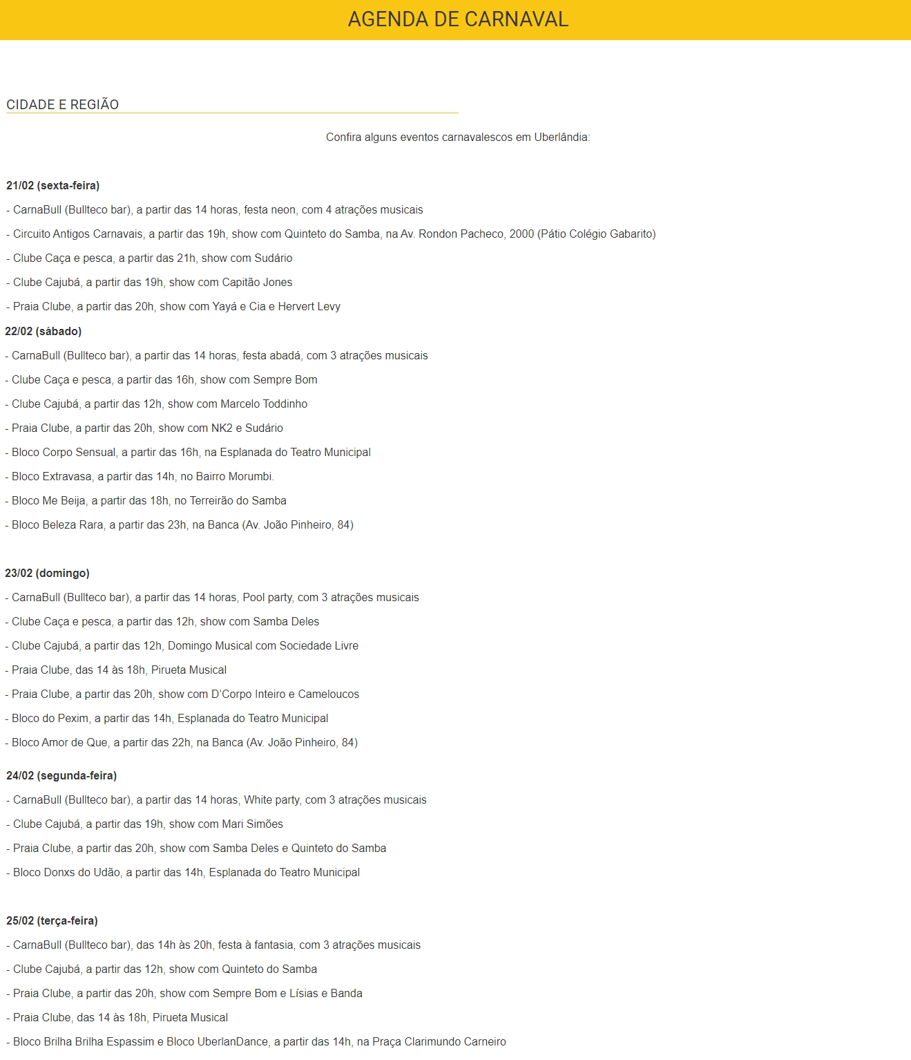 ONLINE - AGENDA DE CARNAVAL - CAJUBÁ - 20/02
