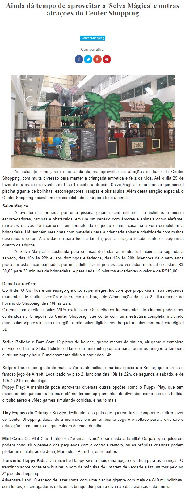 ONLINE - Ainda dá tempo de aproveitar a 'Selva Mágica' e outras atrações do Center Shopping - 06/02