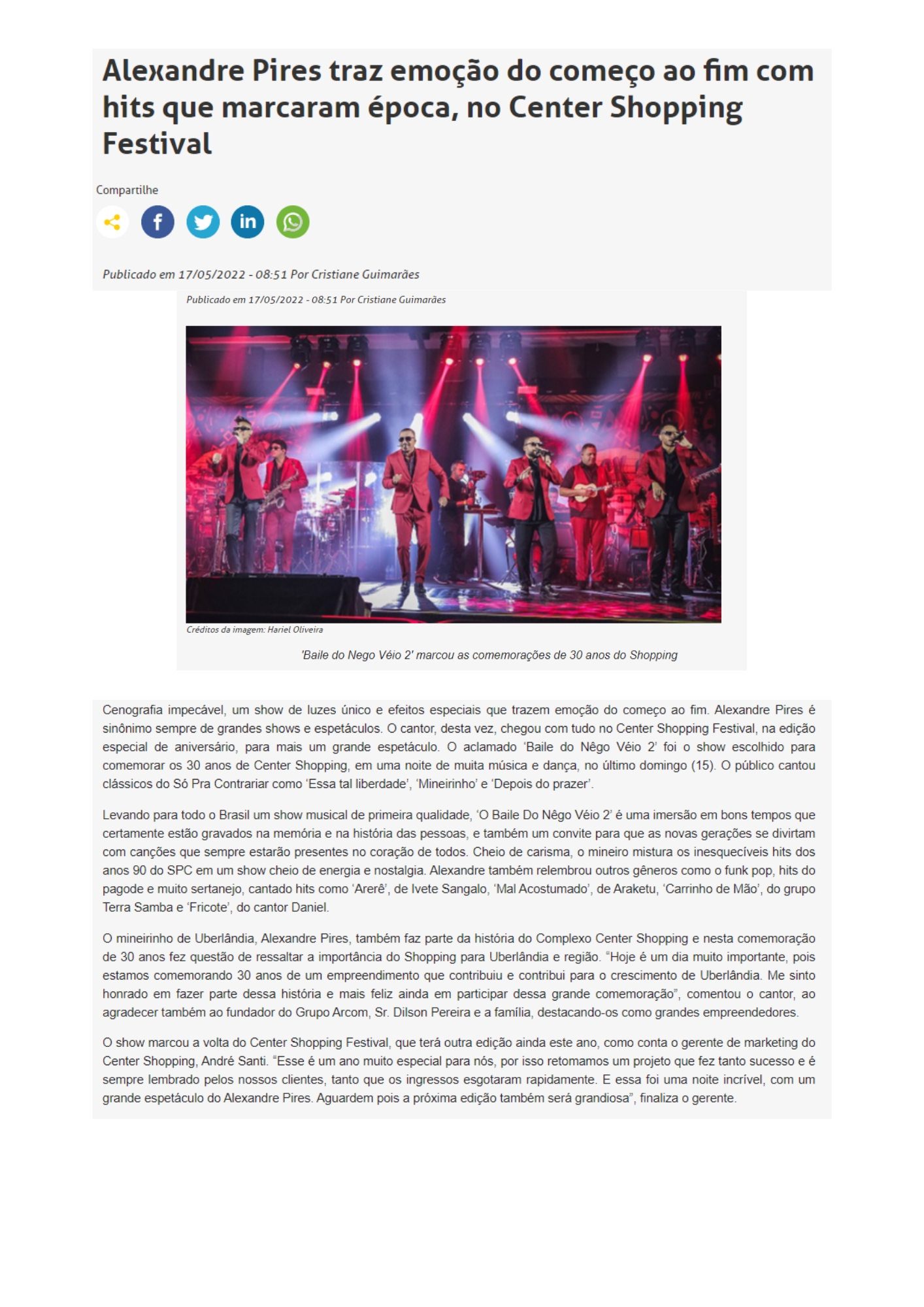 ONLINE - Alexandre Pires traz emoção do começo ao fim com hits que marcaram época, no Center Shopping Festival -17.05