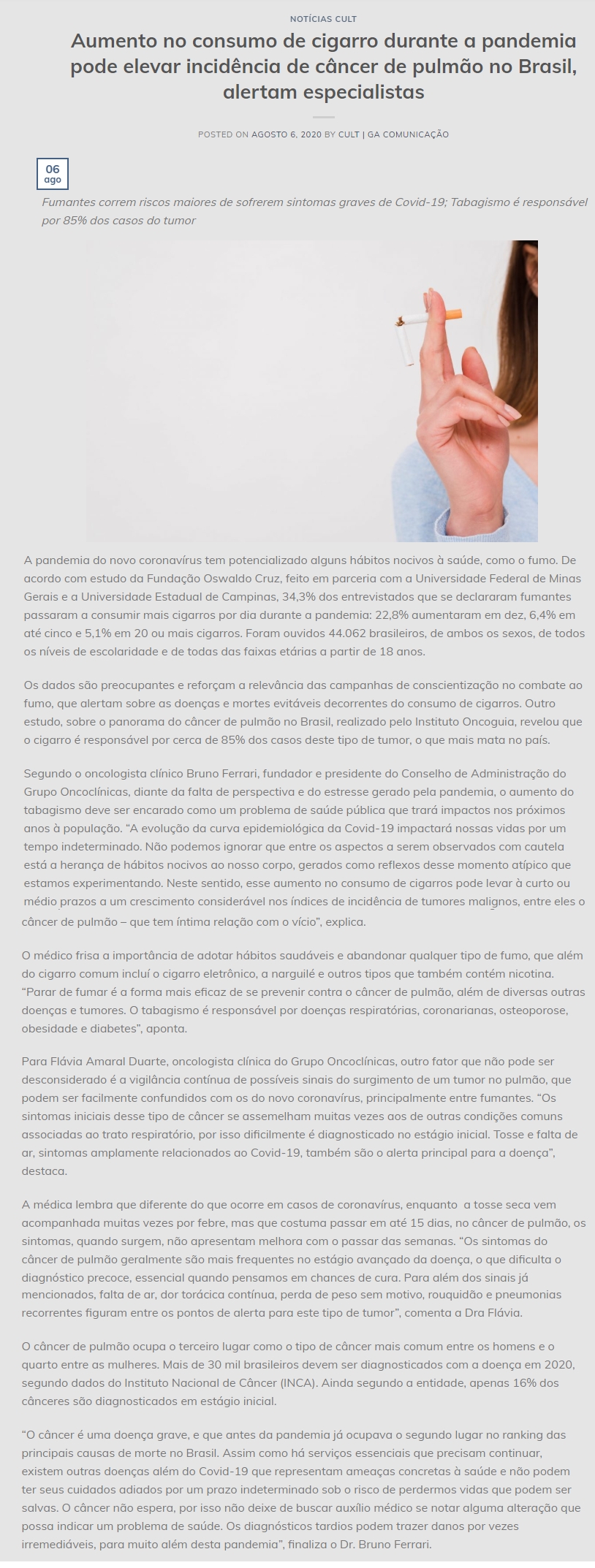 https://revistacultnet.com.br/2020/08/06/aumento-no-consumo-de-cigarro-durante-a-pandemia-pode-elevar-incidencia-de-cancer-de-pulmao-no-brasil-alertam-especialistas