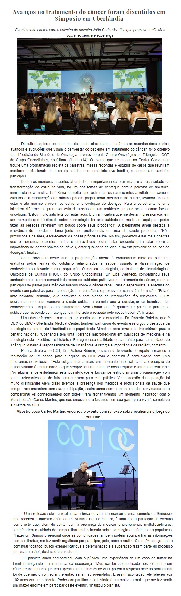 ONLINE - Avanços no tratamento do câncer foram discutidos em Simpósio em Uberlândia - COT - (20/09)