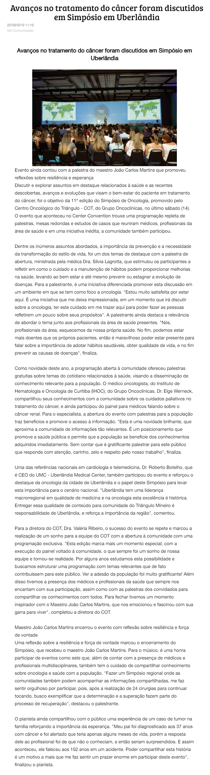 ONLINE - Avanços no tratamento do câncer foram discutidos em Simpósio em Uberlândia - COT - (22/09)