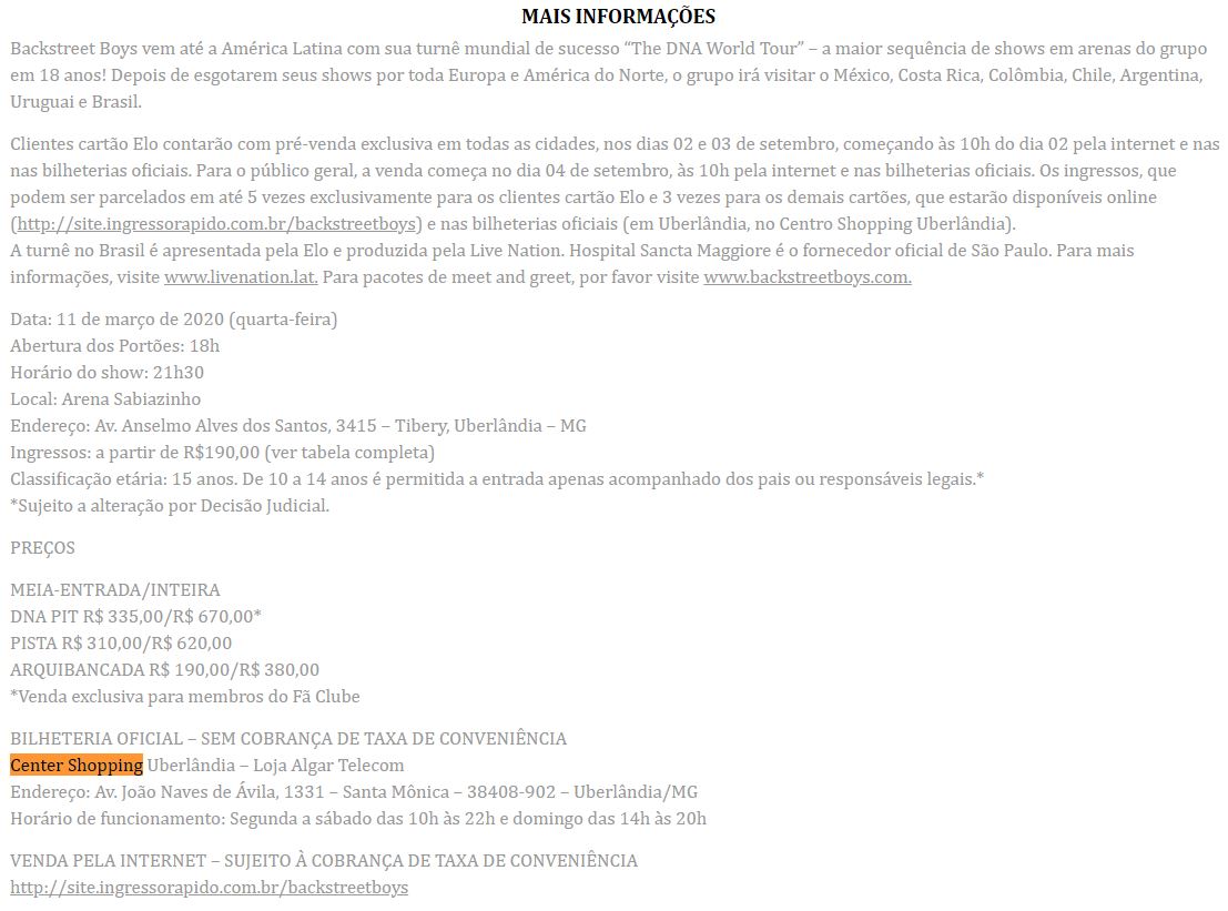 ONLINE - BACKSTREET BOYS: DNA WORLD TOUR – UBERLÂNDIA - PONTO DE VENDAS (24/10)