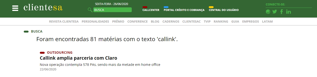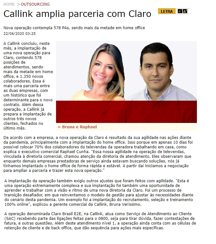 ONLINE - Callink amplia parceria com a Claro - (22/06)