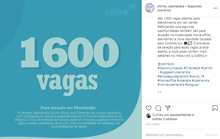 ONLINE - Callink anuncia 1600 novas vagas, incluindo possibilidade de home office - (17/04)