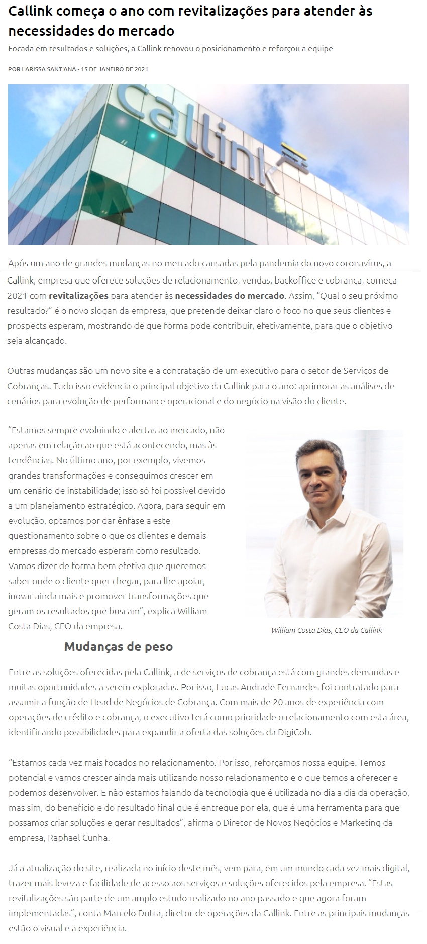ONLINE - Callink começa o ano com revitalizações para atender às necessidades do mercado - 15/01