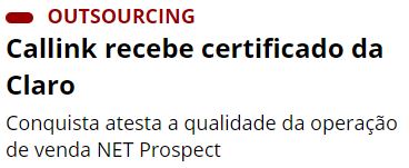 ONLINE - Callink conquista 'Certificado de qualidade' da Claro - 06/01