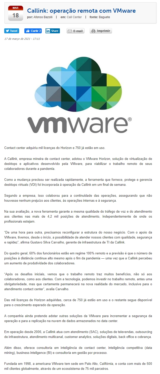 ONLINE - Callink: operação remota com VMware - 18.03