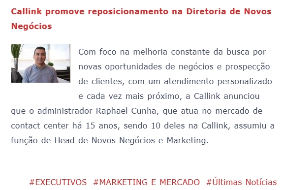 ONLINE - Callink promove reposicionamento na Diretoria de Novos Negócios - (20/07)
