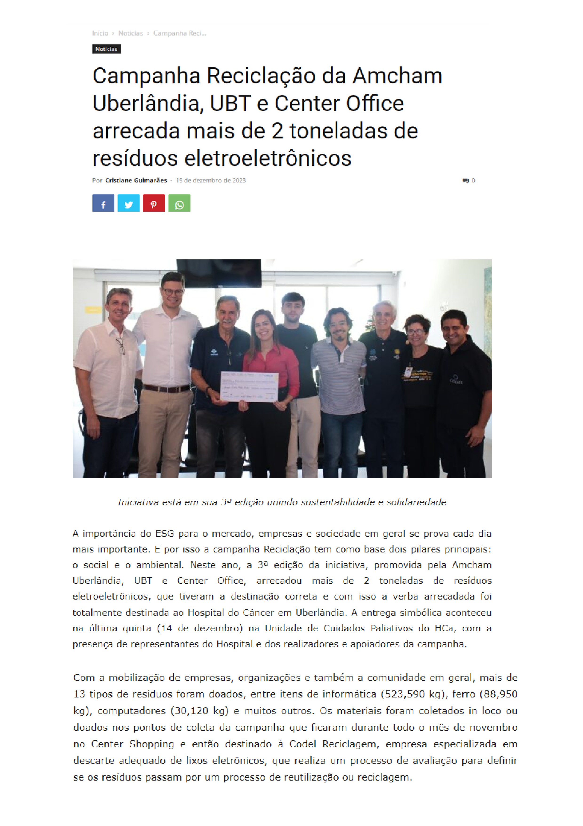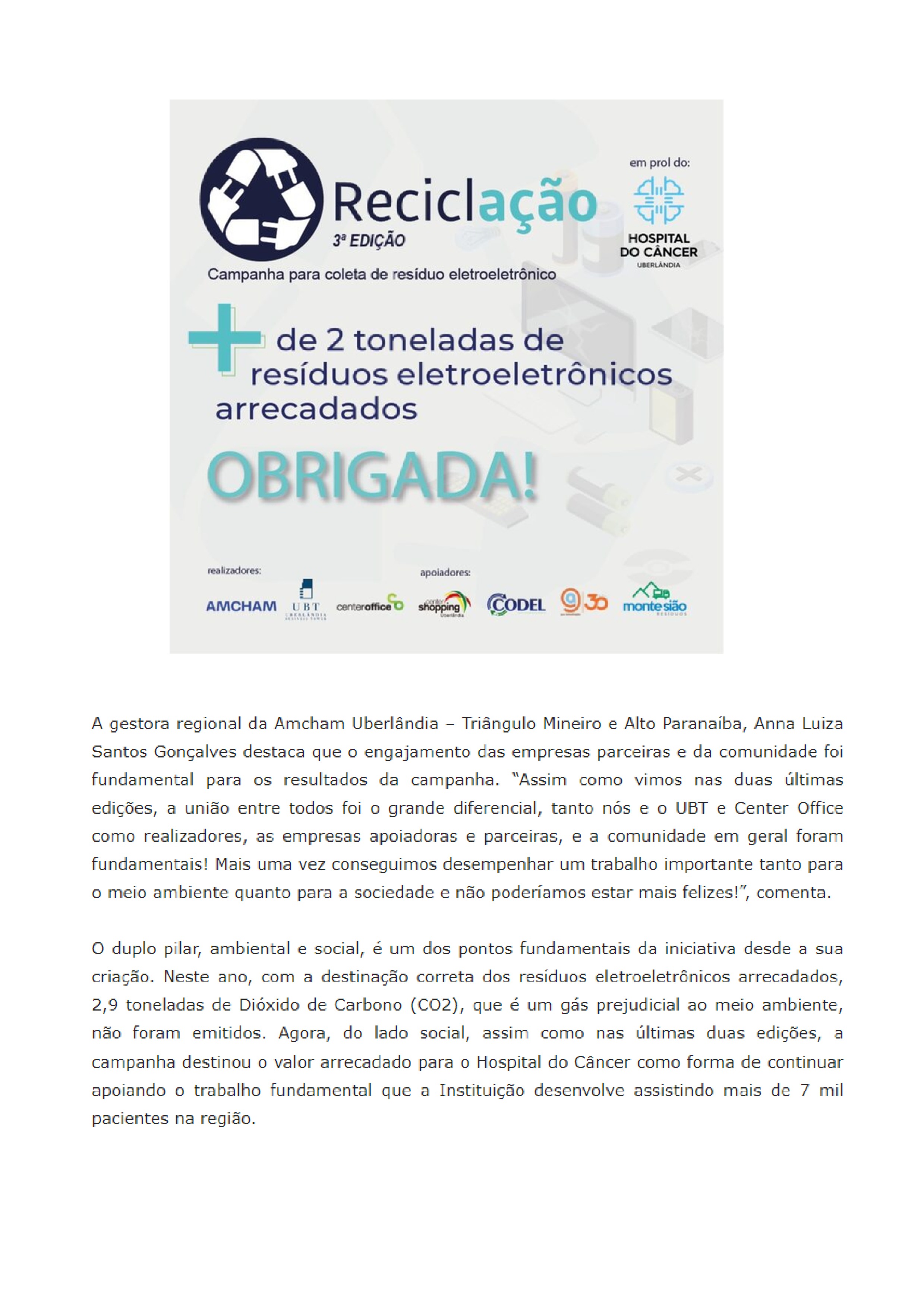 ONLINE-Campanha Reciclação da Amcham Uberlândia, UBT e Center Office arrecada mais de 2 toneladas de resíduos eletroeletrônicos-15.12