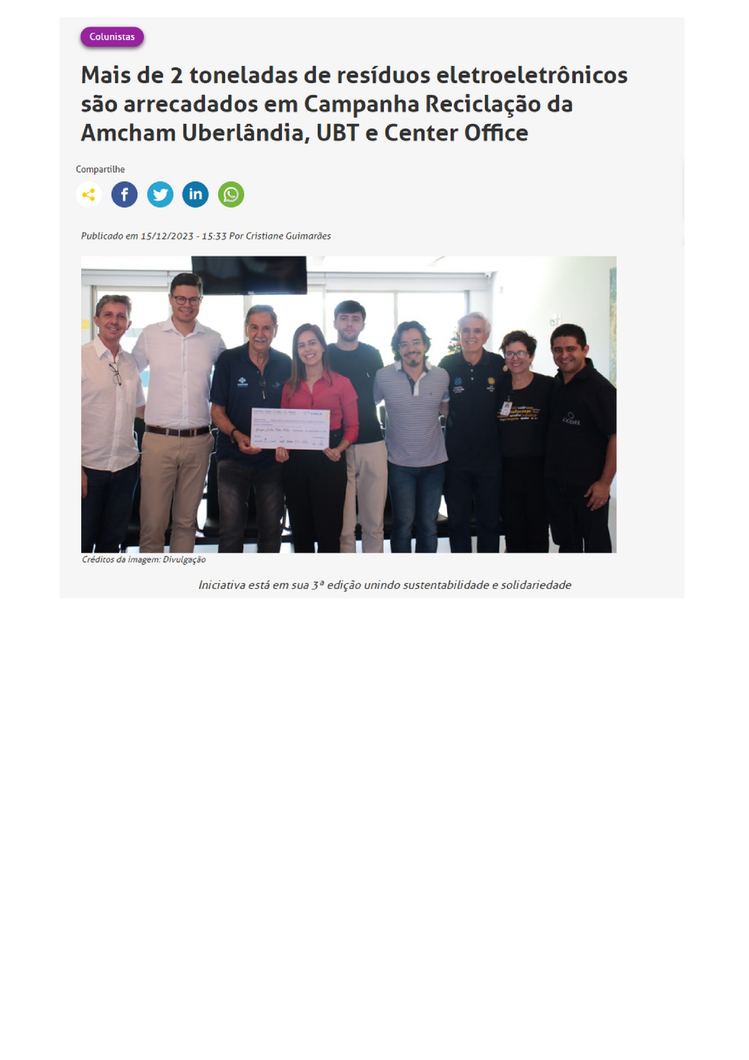 ONLINE-Campanha Reciclação da Amcham Uberlândia, UBT e Center Office arrecada mais de 2 toneladas de resíduos eletroeletrônicos-15.12