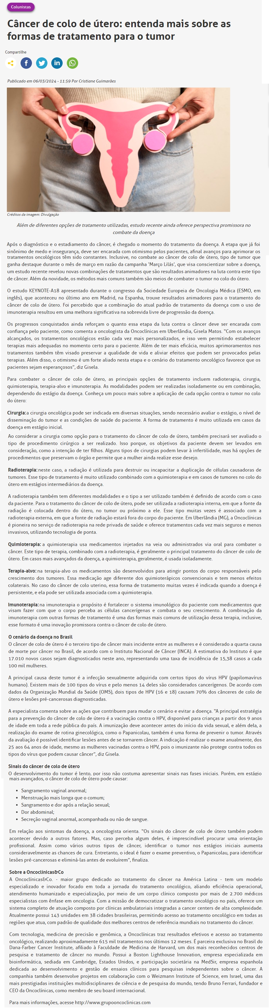 ONLINE-Câncer de colo de útero: entenda mais sobre as formas de tratamento para o tumor-06.03