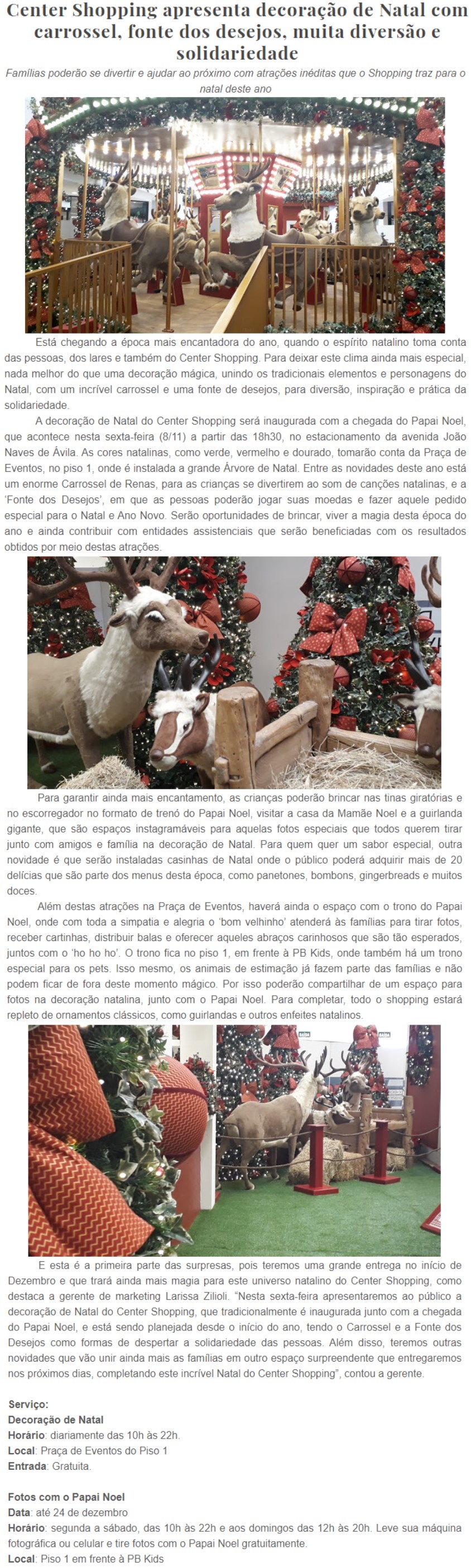 ONLINE - Center Shopping apresenta decoração de Natal com carrossel, fonte dos desejos, muita diversão e solidariedade (08/11)