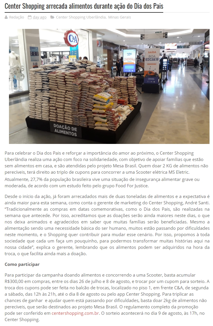 ONLINE-Center Shopping arrecada alimentos durante ação do Dia dos Pais - 05.08