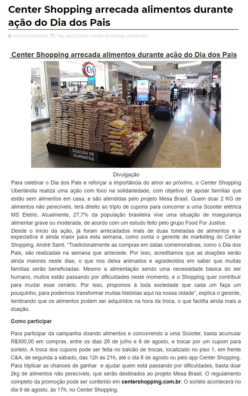 ONLINE - Center Shopping arrecada alimentos durante ação do Dia dos Pais - 07.08