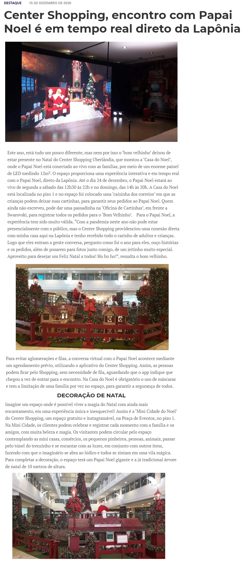 ONLINE - Center Shopping, encontro com Papai Noel é em tempo real direto da Lapônia - 15/12