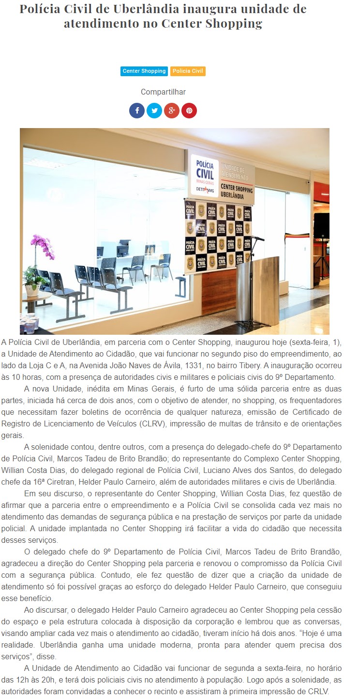 ONLINE - Center Shopping inaugura Posto de atendimento da Polícia Civil (01/11)