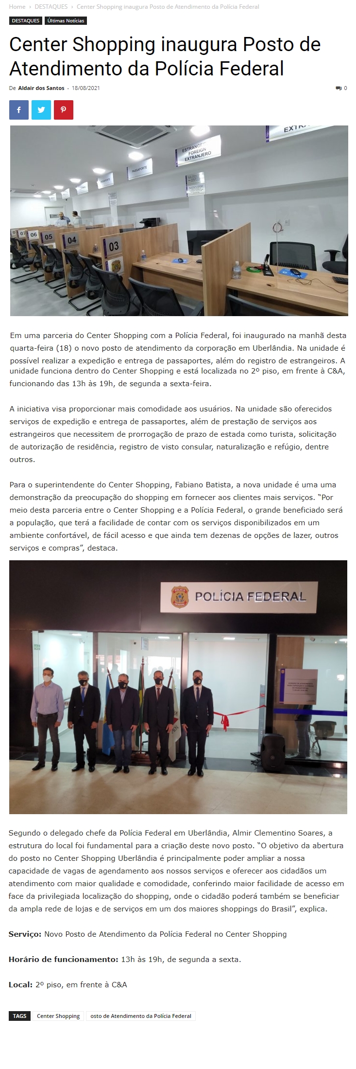ONLINE- Center Shopping inaugura Posto de Atendimento da Polícia Federal - 18.08
