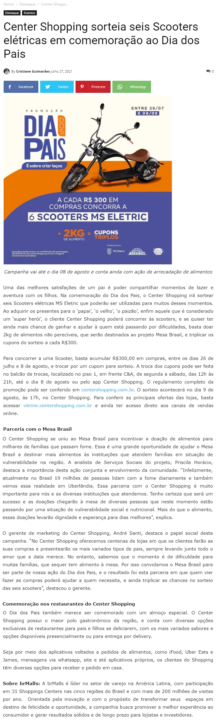 ONLINE-Center Shopping sorteia seis Scooters elétricas em comemoração ao Dia dos Pais -27.07
