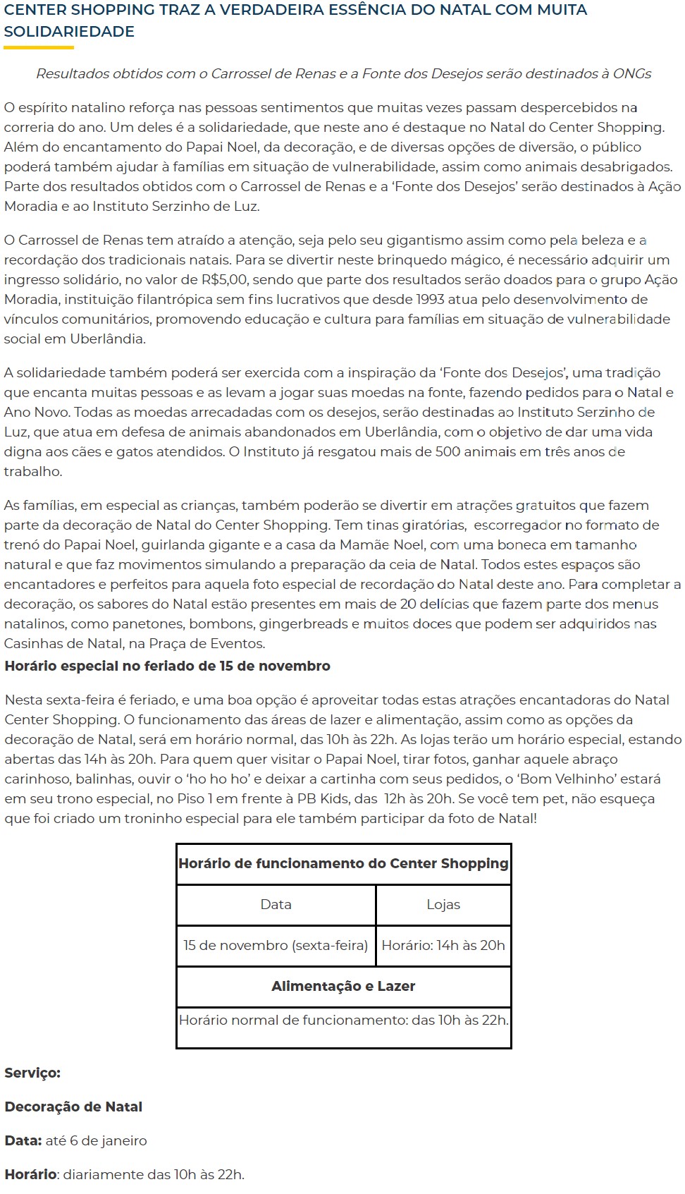ONLINE - Center Shopping traz a verdadeira essência do Natal com muita solidariedade (06/12)