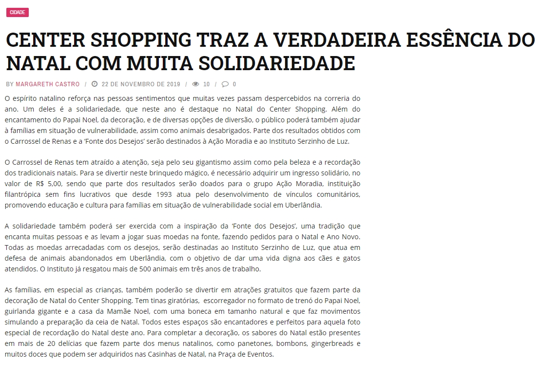 ONLINE - Center Shopping traz a verdadeira essência do Natal com muita solidariedade - (22/11)