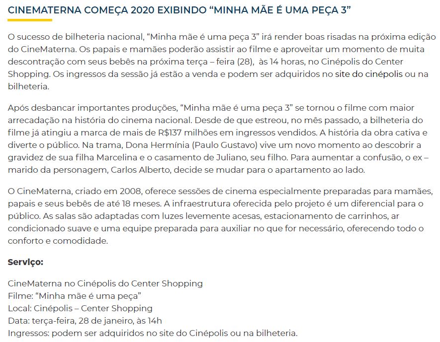 ONLINE - CineMaterna começa 2020 exibindo "Minha mãe é uma peça 3" - CINEMA - 23/01