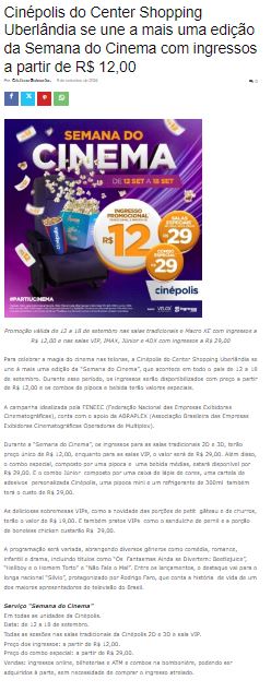 ONLINE-Cinépolis do Center Shopping Uberlândia se une a mais uma edição da Semana do Cinema com ingressos a partir de R$ 12,00- 10.09