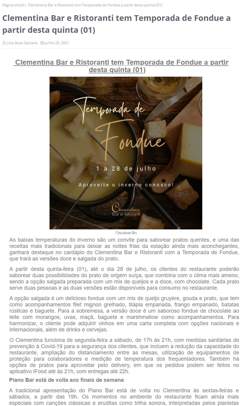 ONLINE-Clementina Bar e Ristoranti tem Temporada de Fondue a partir desta quinta (01)-29.06