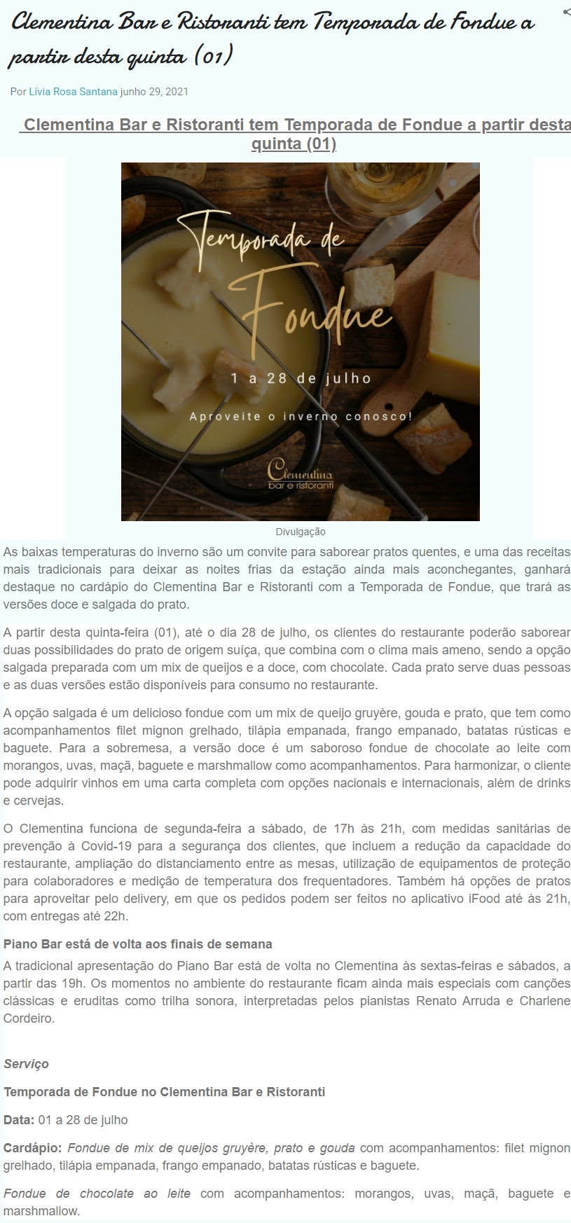 ONLINE-Clementina Bar e Ristoranti tem Temporada de Fondue a partir desta quinta (01)-29.06
