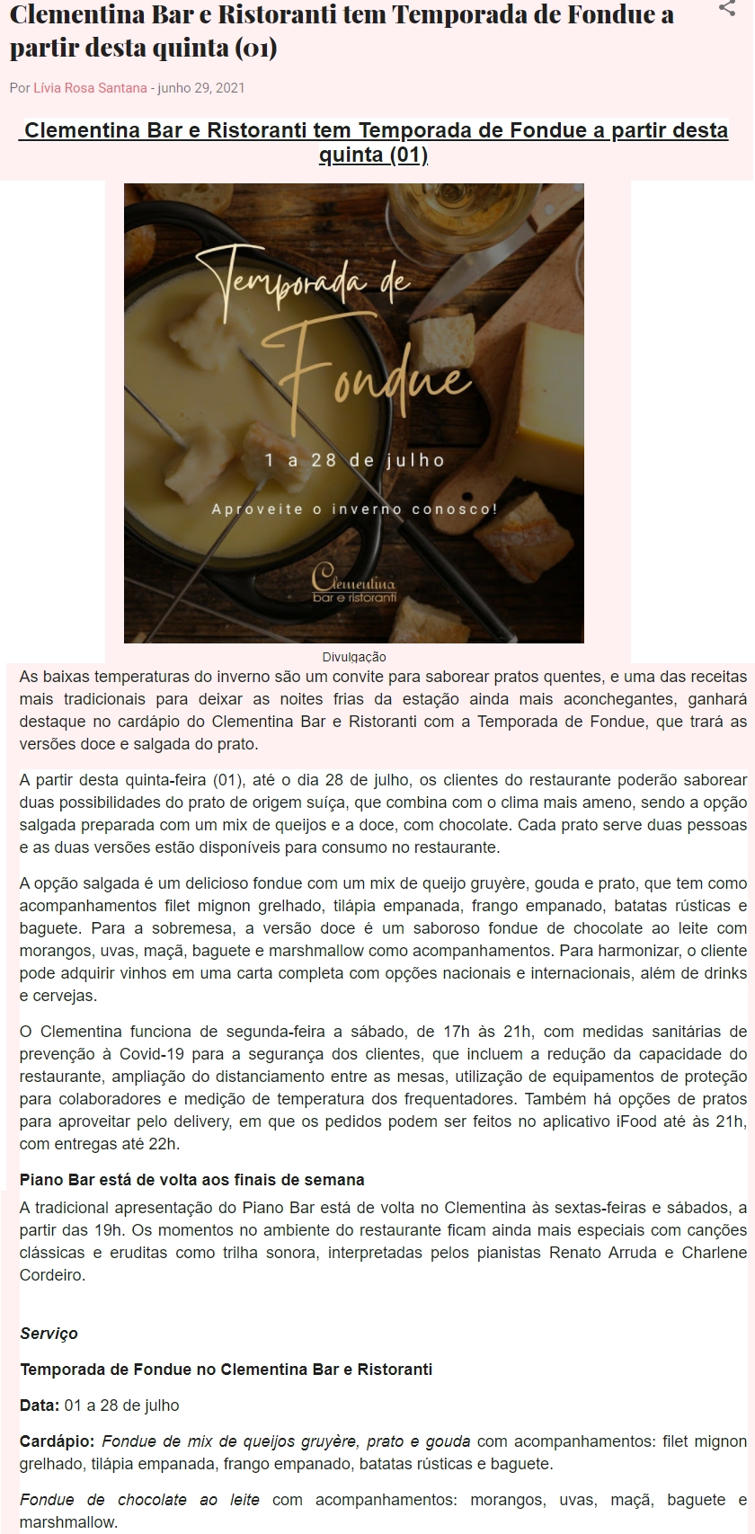 ONLINE-Clementina Bar e Ristoranti tem Temporada de Fondue a partir desta quinta (01)-29.06