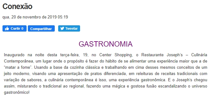 ONLINE - COLUNA CONEXÃO - INAUGURAÇÃO JOSEPH'S - (20/11)