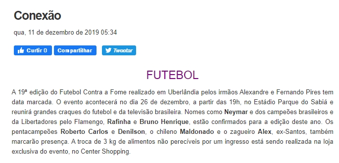 ONLINE - Coluna Conexão - Futebol contra a fome - (11/12)