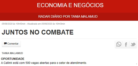 ONLINE - Coluna Economia e Negócios - 500 vagas - 08/06