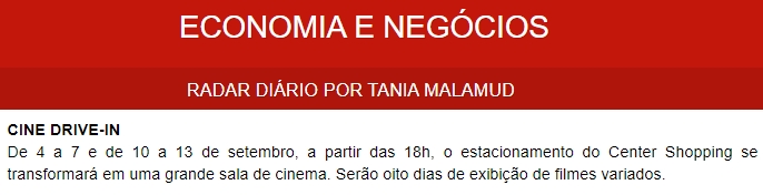ONLINE - Coluna Economia e Negócios - Cine Drive-in - 04/09