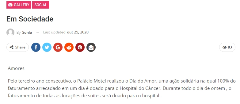 ONLINE - Coluna Em Sociedade - Campanha Dia do Amor com verba destinada ao Hospital do Câncer - 25/10