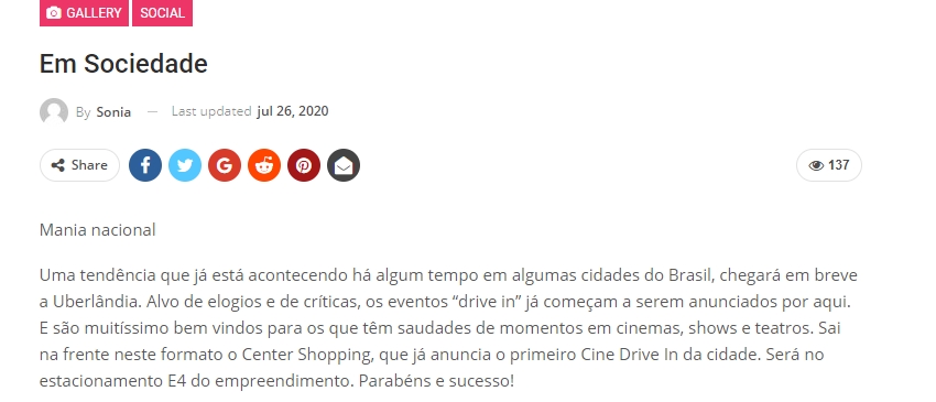 ONLINE - Coluna Em sociedade - Cine Drive In - (26/07)