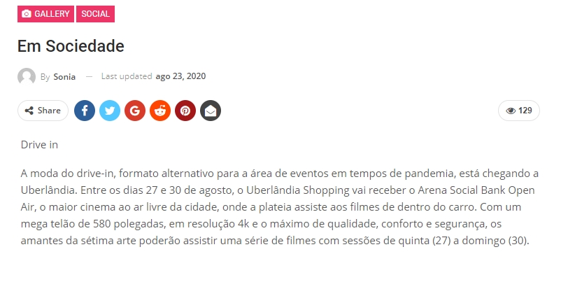 ONLINE - Coluna em Sociedade - Cine Drive In Arena Social Bank Open Air - Patrocínio Social Bank (23/08)