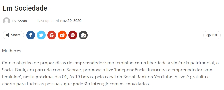 ONLINE - Coluna Em Sociedade - Nota sobre debate de independência financeira como liberdade feminina - 29/11